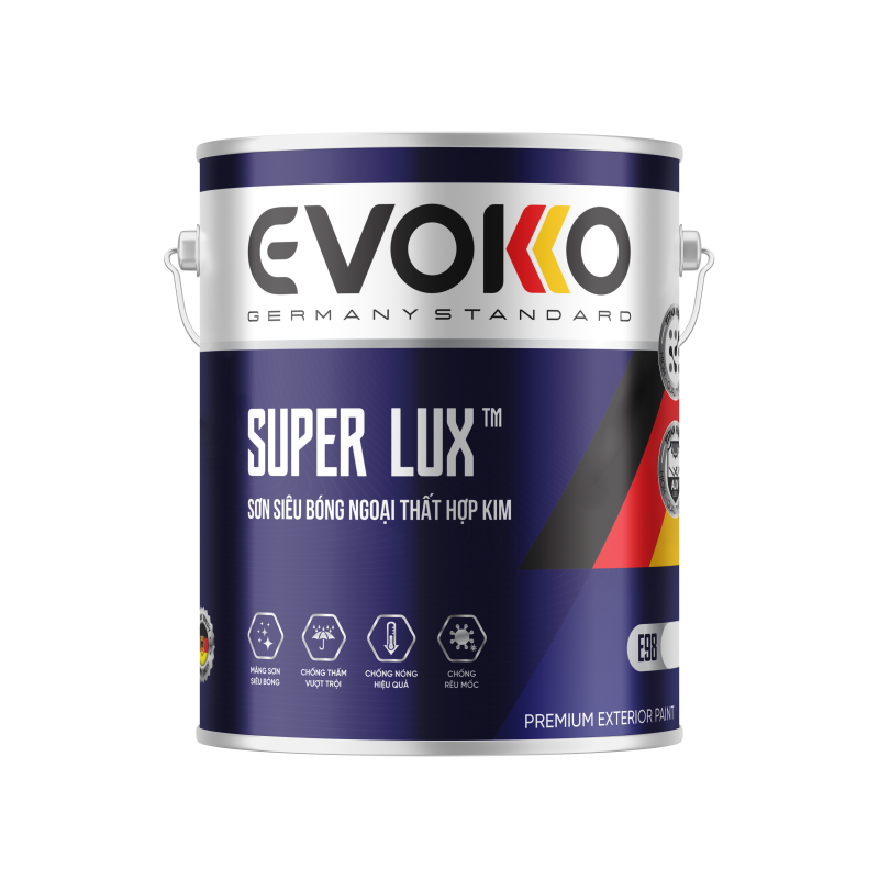 EVOKO SUPER LUX™ – SƠN SIÊU BÓNG HỢP KIM NGOẠI THẤT là loại sơn nước ngoại thất được làm từ nhựa Acrylic 100% cao cấp nên có độ dàn đều tuyệt hảo và màng sơn siêu bóng hợp kim. Fujisu Yamato có khả năng che lấp khe nứt nhỏ lên đến 0.5mm. EVOKO SUPER LUX™ – SƠN SIÊU BÓNG HỢP KIM NGOẠI THẤT có kết cấu phân tử MICROSPHERE đan xen ngăn cách không cho tia nóng xuyên qua làm giảm nhiệt tới 6 độ C cho bề mặt tường và tạo không khí thoáng mát cho ngôi nhà nhiệt đới. Với nhiều chủng loại màu có khả năng chống tia cực tím và kháng kiềm,EVOKO SUPER LUX™ – SƠN SIÊU BÓNG HỢP KIM NGOẠI THẤTlà loại sơn rất bền vững, chịu đựng thời tiết khắc nghiệt nhờ công nghệ God Shield, chống rêu và nấm mốc, có độ kết dính cao. EVOKO SUPER LUX™ – SƠN SIÊU BÓNG HỢP KIM NGOẠI THẤT lý tưởng cho bề mặt ngoại thất như thạch cao, hồ vữa và bê tông.
